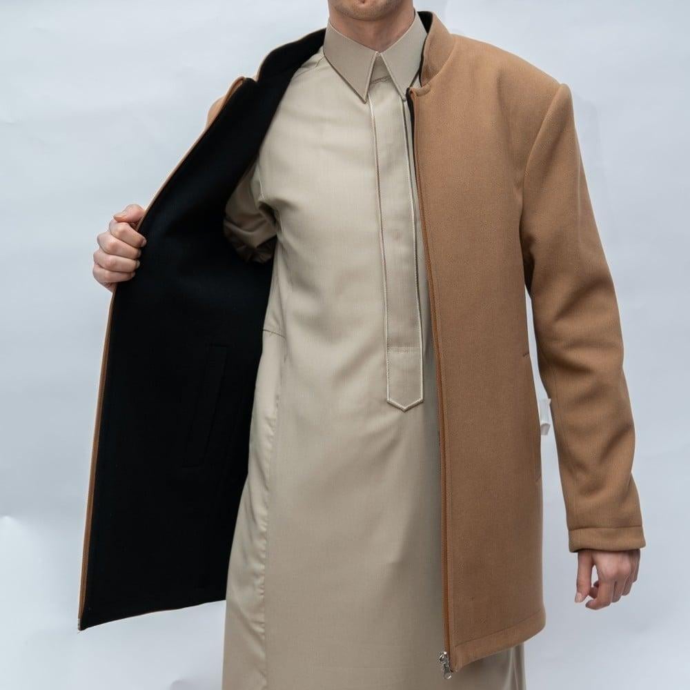 يتميز بقماش جوخ عالي الجودة يمنح دفئًا مريحًا، مع إمكانية ارتدائه من الجهتين لتعدد الإطلالات في قطعة واحدة.