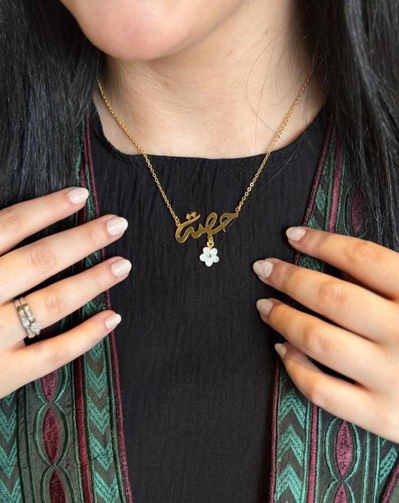 ✨ السلسال الذي يتكلم بلغة الأناقة، ويمنح اسمك لمسة من الجمال المزهر.