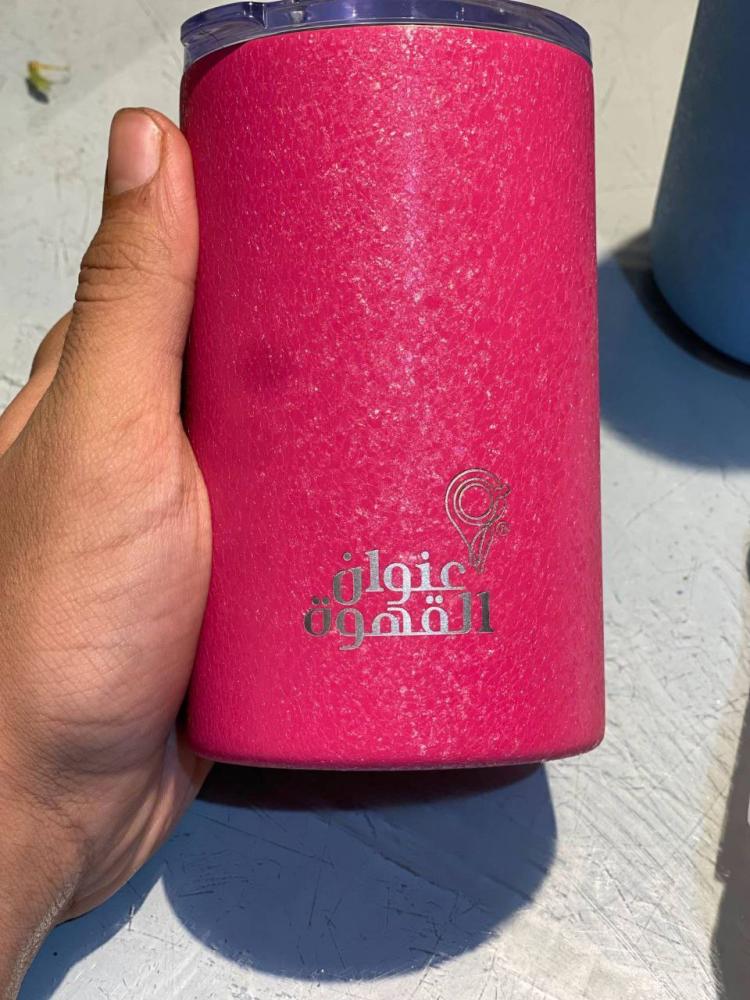 مق أنيق بالوان مختلفه فاخر يحمل عبارة عنوان القهوة، مع امكانية اضافة اسم على المق مثالي لعشاق القهوة واللحظات الخاصة.